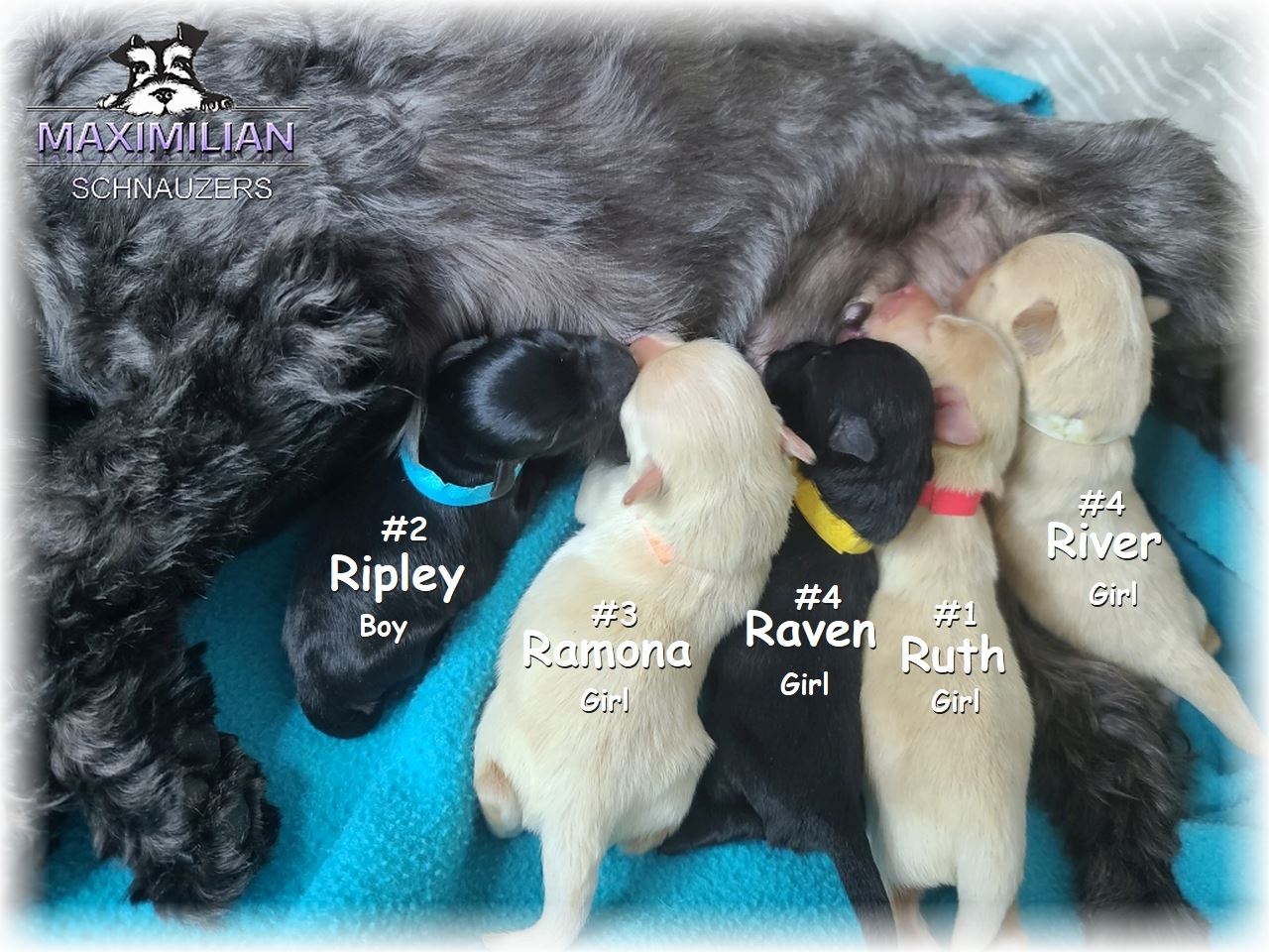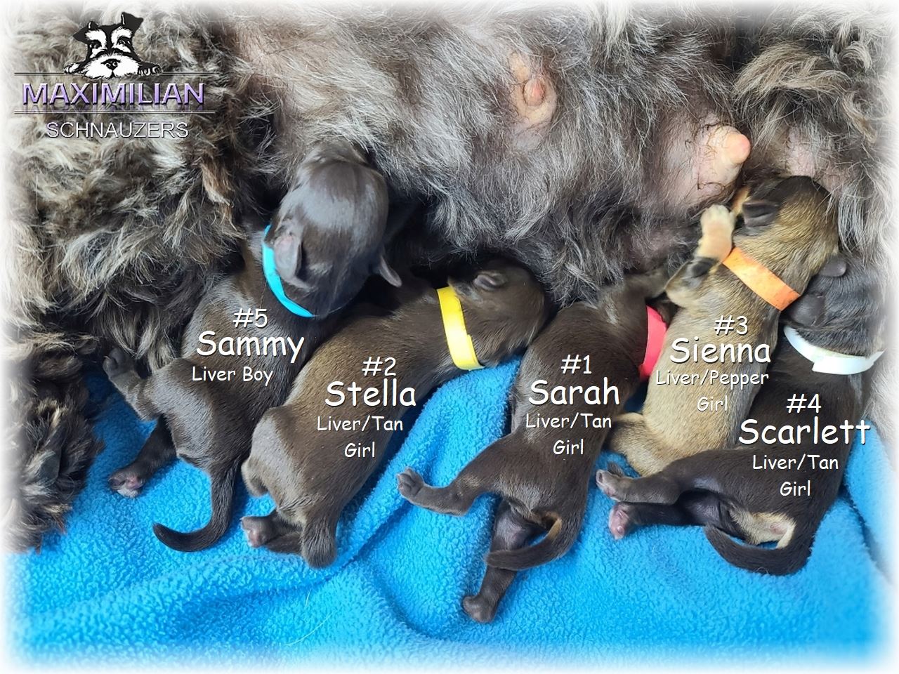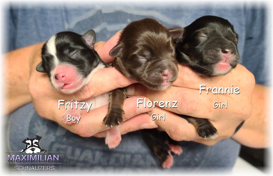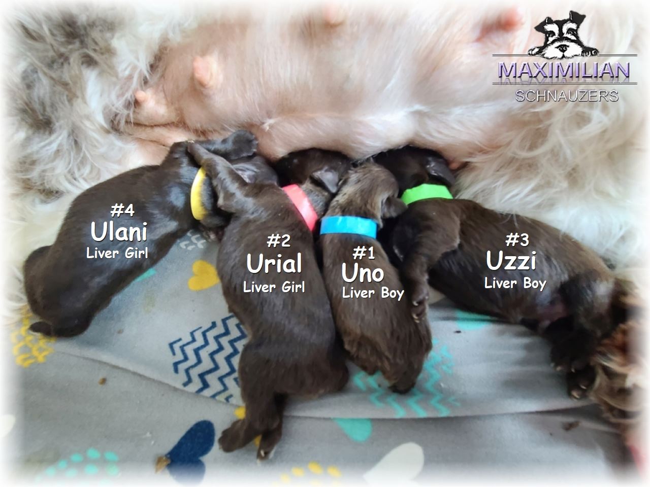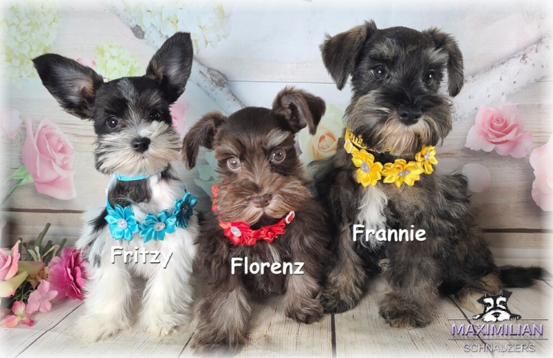 Presented by Maximilian Schnauzers, we invite you to witness the incredible journey of your puppy from birth through their joyful development until they finally find their way into your loving embrace. Unlike any other breeder, we offer you the opportunity to observe your precious pup 24/7 through our live webcams, allowing you to truly understand their upbringing and socialization firsthand, rather than relying solely on words.